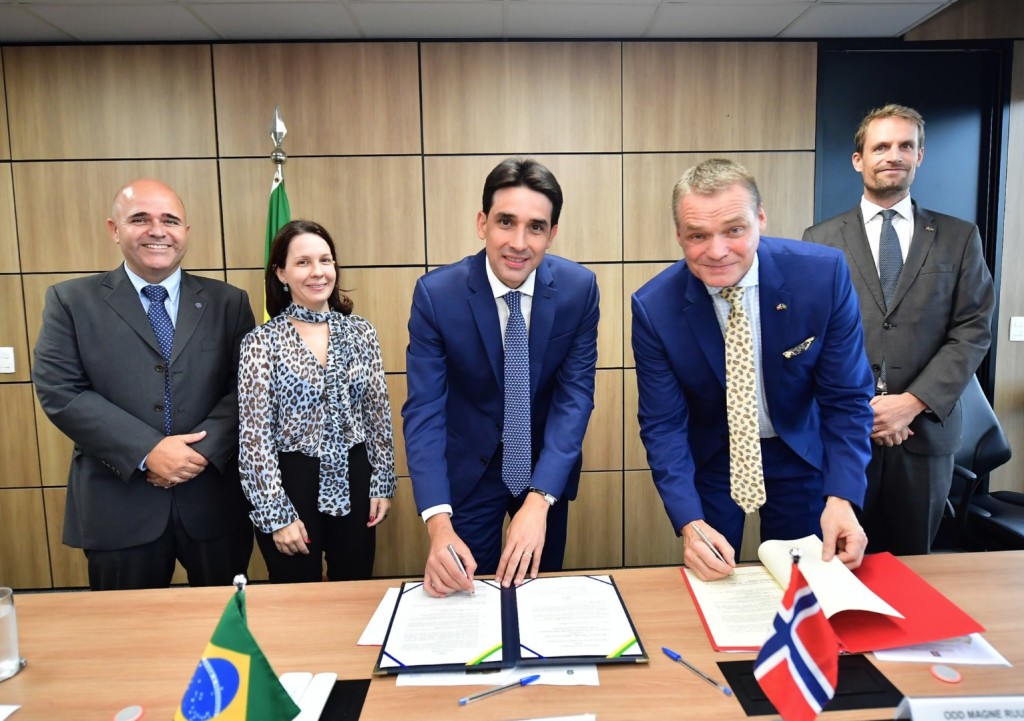 O ministro dos Portos e Aeroportos, Silvio Costa Filho, e o embaixador da Noruega, Odd Magne Ruud, em nome do Ministério do Clima e Meio