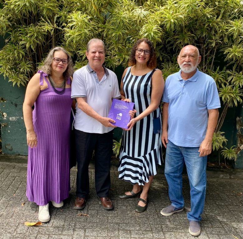 Na segunda-feira (21), a ministra da Ciência, Tecnologia e Inovação, Luciana Santos, recebeu o Livro Violeta, documento referente à 5ª Conferência Nacional de Ciência, Tecnologia e Inovação (5CNCTI), em reunião realizada em Recife com o secretário-geral da CNCTI, o ex-ministro Sergio Machado Rezende (UFPE), o secretário-geral adjunto, Anderson Gomes (CGEE e UFPE), e a coordenadora da Subcomissão de Sistematização e Documentação, Francilene Garcia (SBPC).