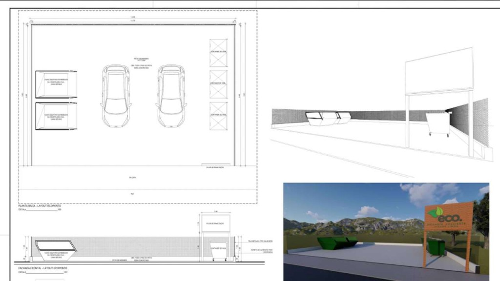 O primeiro ecoponto será instalado em breve em área estratégica no bairro Zero Quilômetro, atendendo toda a região central. O espaço terá 13 metros de comprimento por 10 metros de largura e contará com quatro contêineres de cinco metros cúbicos cada, além de coletores menores, com capacidade de um metro cúbico, destinados à coleta seletiva de vidro, plástico e metal. A sinalização clara permitirá fácil identificação e acesso, inclusive para quem circula pela Avenida Ulisses Pompeu de Campos.