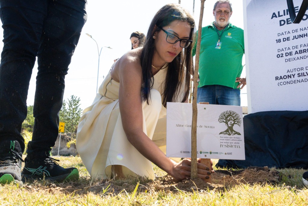 Alenir Gomes da Silva também participou da ação em homenagem à filha vítima de feminicídio. Aline Gomes de Souza foi morta a facadas pelo marido aos 20 anos, em Cuiabá, no ano de 2020.