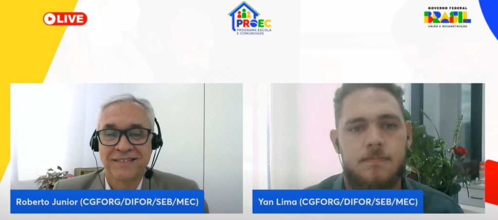 O Ministério da Educação (MEC), por meio da Secretaria de Educação Básica (SEB), abriu o ciclo de 2025 do Programa Escola e Comunidade (Proec). Em webinário transmitido pelo canal do MEC no YouTube nesta terça-feira, 3 de junho, a pasta prestou esclarecimentos a gestores públicos e representantes das secretarias de educação e de escolas sobre os próximos passos no processo de execução da política. As redes de ensino têm até 8 de junho para formalizar a adesão ao programa, através do Sistema Integrado de Monitoramento, Execução e Controle (Simec), pelo módulo PAR 4.